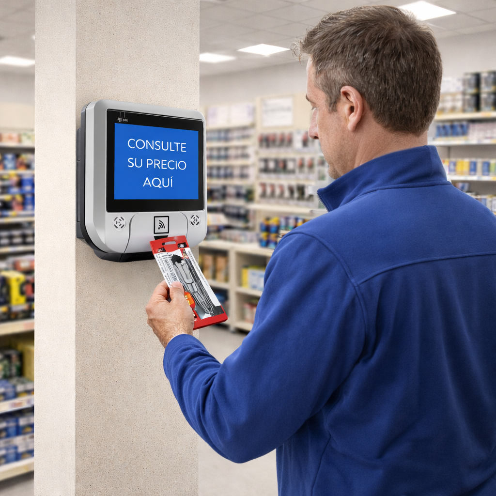 El módulo Verificador de Precios de Control Integral te permite posicionar equipos de verificación de precios en las zonas de mayor tránsito de tu establecimiento, y ahorrar tiempo y material de etiquetado de productos en estanterías.